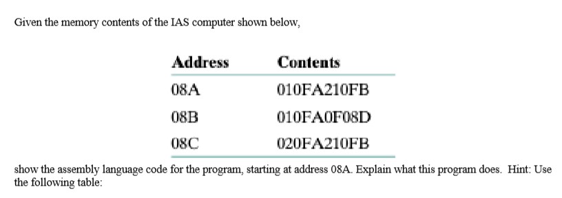 Solved Given The Memory Contents Of The Ias Computer Shown Chegg Com